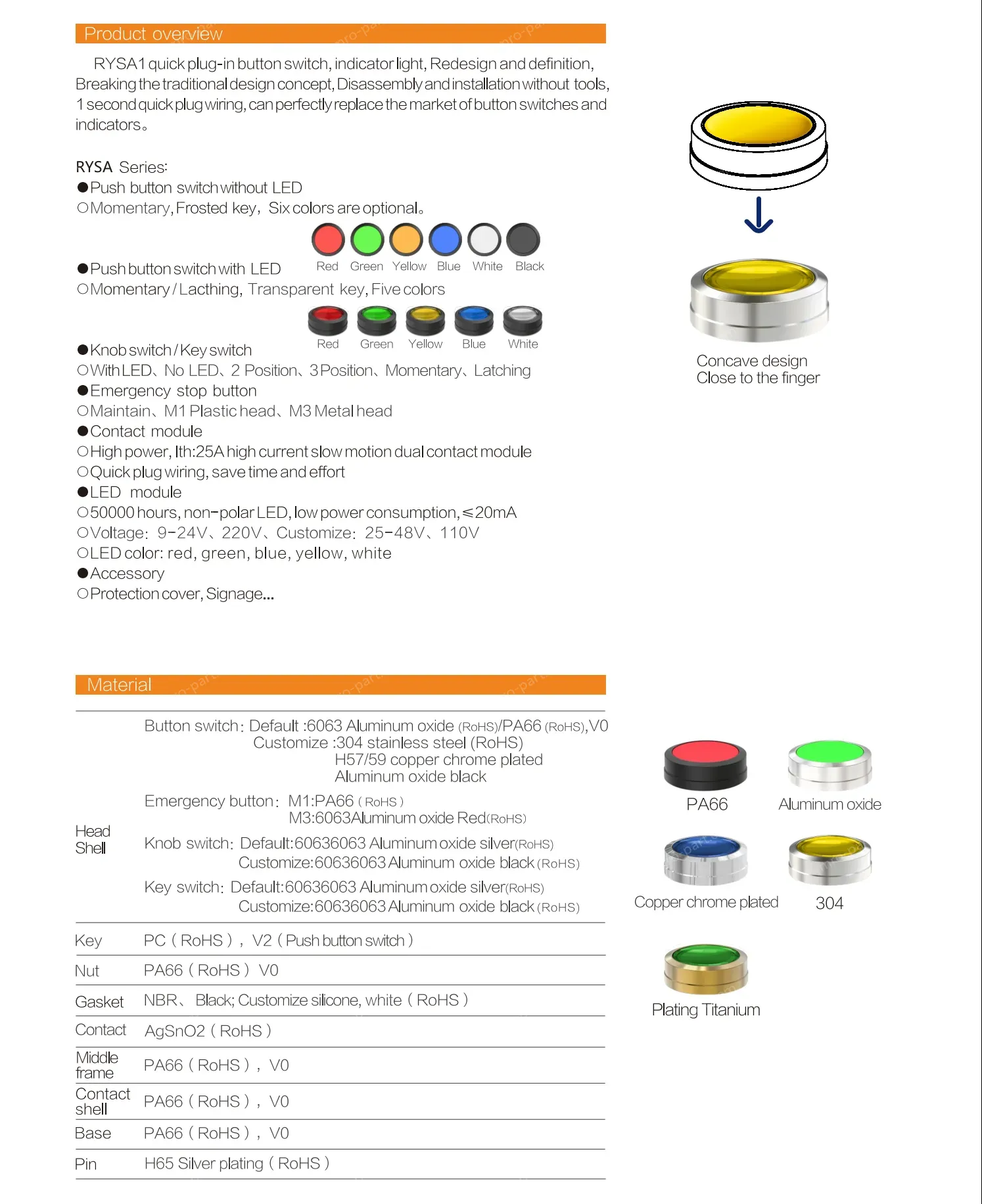 • White transparent button, plastic edge, can be equipped with lamp holder module